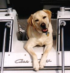 Elwood's favorite spot on the boat,